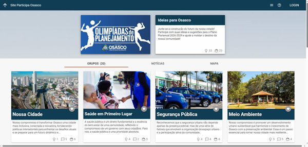 Além disso, a plataforma é baseada na tecnologia Your Priorities, uma solução open source (software de código aberto, disponível ao público, que pode ser livremente utilizado, estudado, modificado e redistribuído), amplamente adotada em projetos de engajamento comunitário em diversos países.