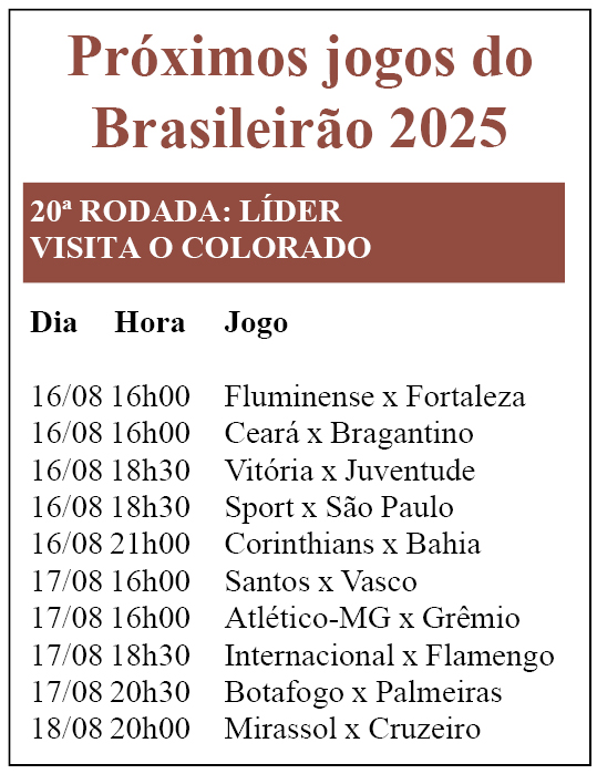Santos, Corinthians e Bragantino aparecem com maior risco de degola (19%, 17,1% e 4,7%) do que perspectivas de festejar com a taça (0,051%; 0,021% e 0,24%, nesta ordem). O “Peixe” ainda é o que mais causa calafrios em seus torcedores mesmo já fora do bloco dos piores há duas rodadas, todavia em campo mosqueteiros e bragantinos também andam vacilantes e já deixam quem os apoia com o rosário às mãos. O Corinthians caiu em Caxias do Sul (RS) diante do Juventude e atingiu a marca de uma solitária vitória nos 10 últimos jogos – o que contrasta negativamente com a arrancada do final da temporada de 2024, quando com nove triunfos seguidos escapou do pântano.