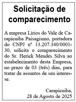 Início Editais Lírios do Vale – Solicitação de Comparecimento -2 Editais Lírios do Vale – Solicitação de Comparecimento -2 Por admin - 28 de agosto, 2025 246 0 Facebook Twitter Pinterest WhatsApp
