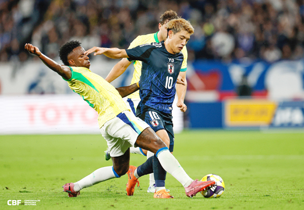 O Brasil (camiseta amarela) não soube segurar a vantagem que construiu na etapa inicial e acabou derrotado de virada pelo Japão, em Tóquio - Foto: Rafael Ribeiro/CBF