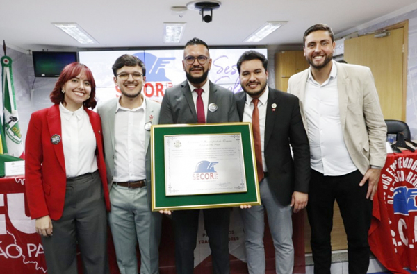 Segundo o parlamentar, o Secor é uma das principais vozes em defesa da dignidade, dos direitos e da valorização da categoria. O Sindicato esteve representado pelo seu presidente, Luciano Leite, que agradeceu a homenagem e a dedicou à luta de todos os trabalhadores.