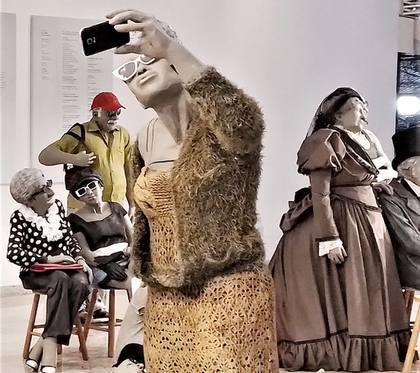 As esculturas chamam atenção pelo realismo e pela técnica sustentável de “empapelamento”: os rostos são modelados em argila, enquanto os corpos são estruturados com materiais de descarte, como papel, gesso, cola e vestimentas adquiridas em brechós.