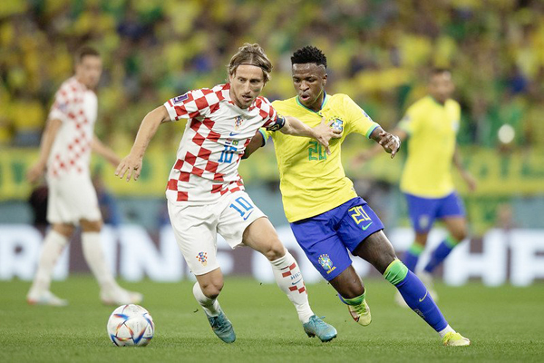 Brasil (uniforme canarinho) e Croácia se encararam em 2022 – Foto: Lucas Figueiredo/CBF