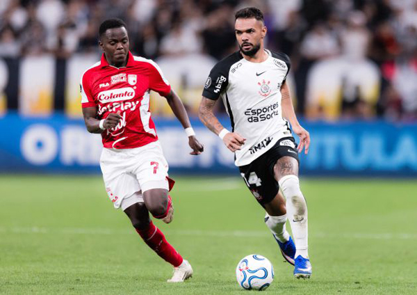 Raniele (camisa branca) abriu a contagem no jogo vencido pelo Corinthians contra o Independiente Santa Fé - Foto: Wanderson Oliveira/Meu Timão