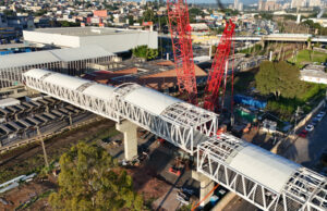 Nova passarela no Centro de Carapicuíba terá 112 metros de extensão e teve concluída etapa de montagem dos módulos