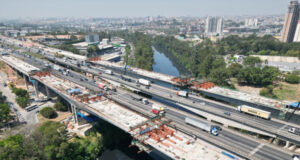 ‘Beijo’ marca concretagem de nova ponte nas marginais da Castello Branco